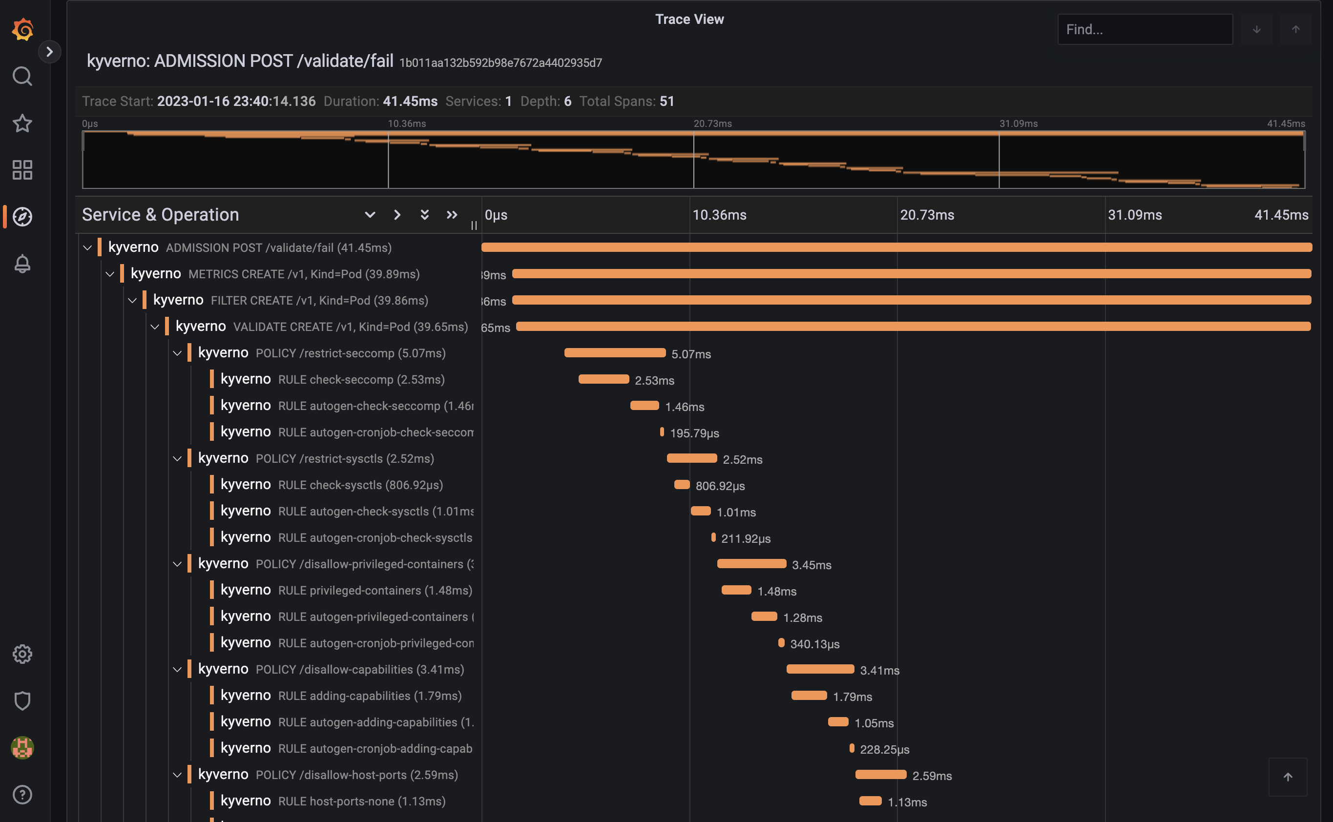 kyverno, every trace defines a service name and all traces coming from Kyverno will use thekyvernoservice name - Span name: